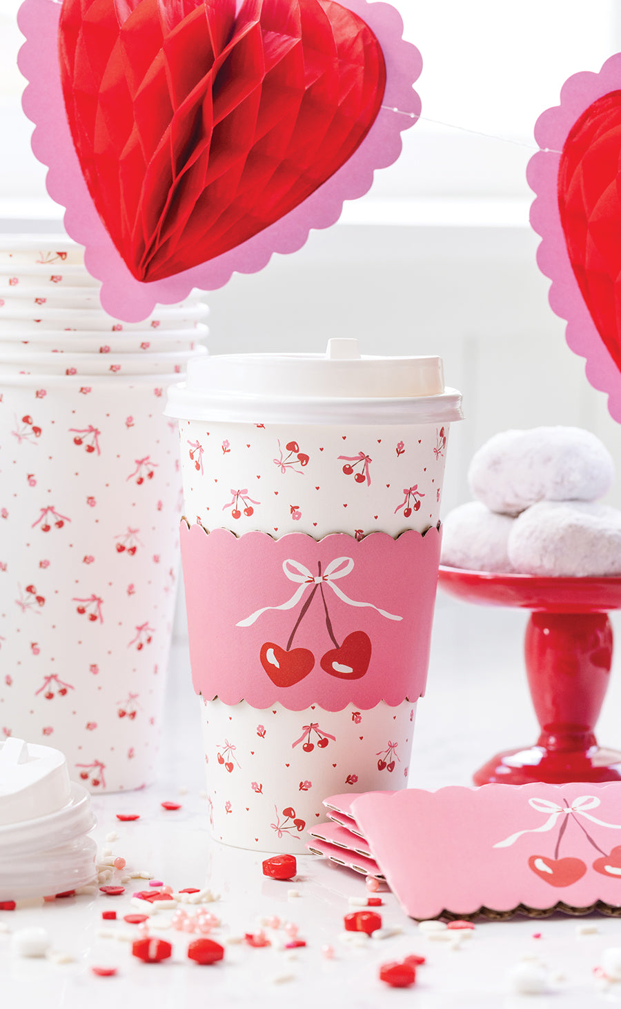 Serve up sweetness with these charming Cherry Bunches To Go Cups! Perfect for Valentine's Day celebrations, these 8-count cups feature delightful cherry designs that add a festive pop of color to any gathering. Whether you're hosting an intimate dinner or a lively celebration, these themed cups make every sip special and keep the Valentine's spirit alive throughout your party!