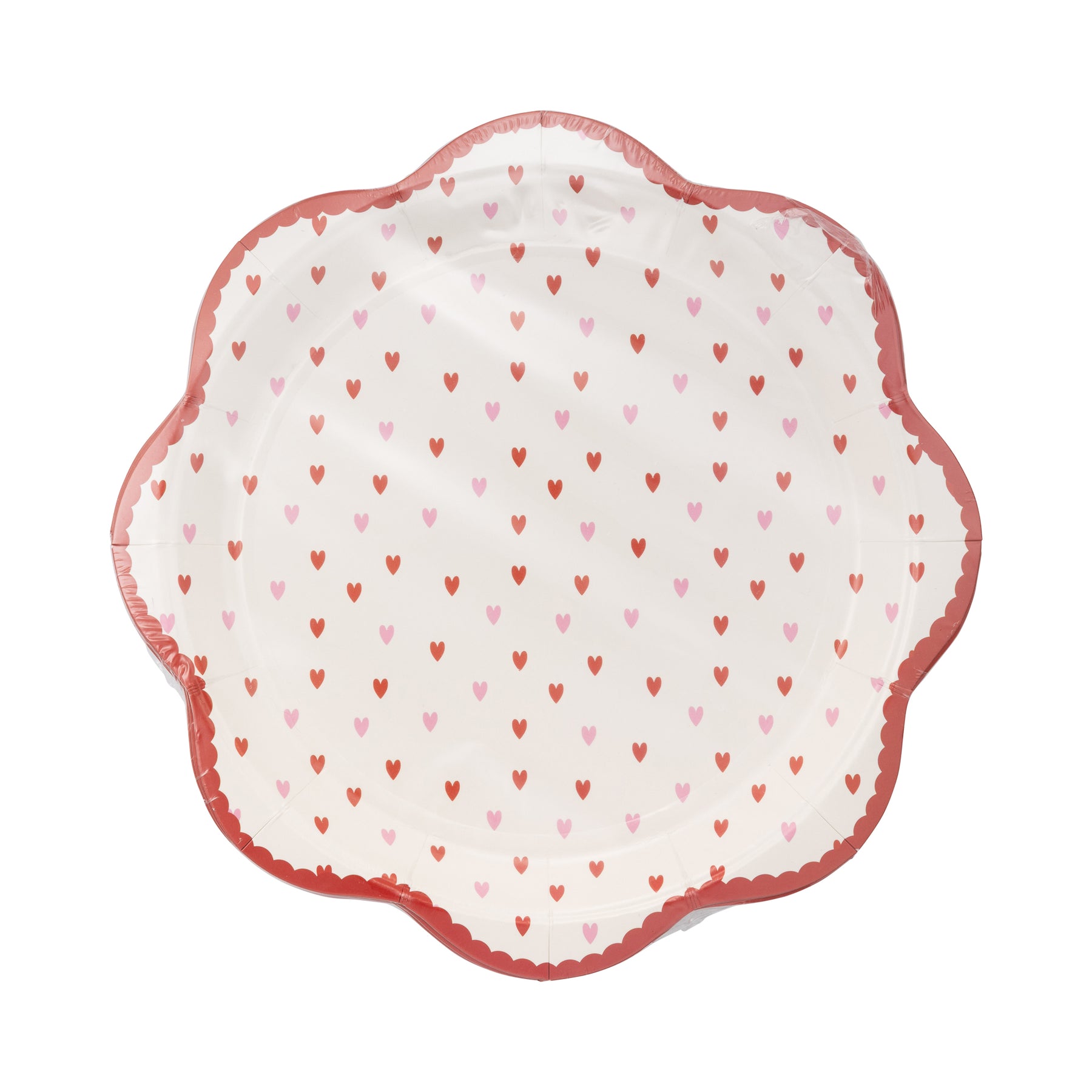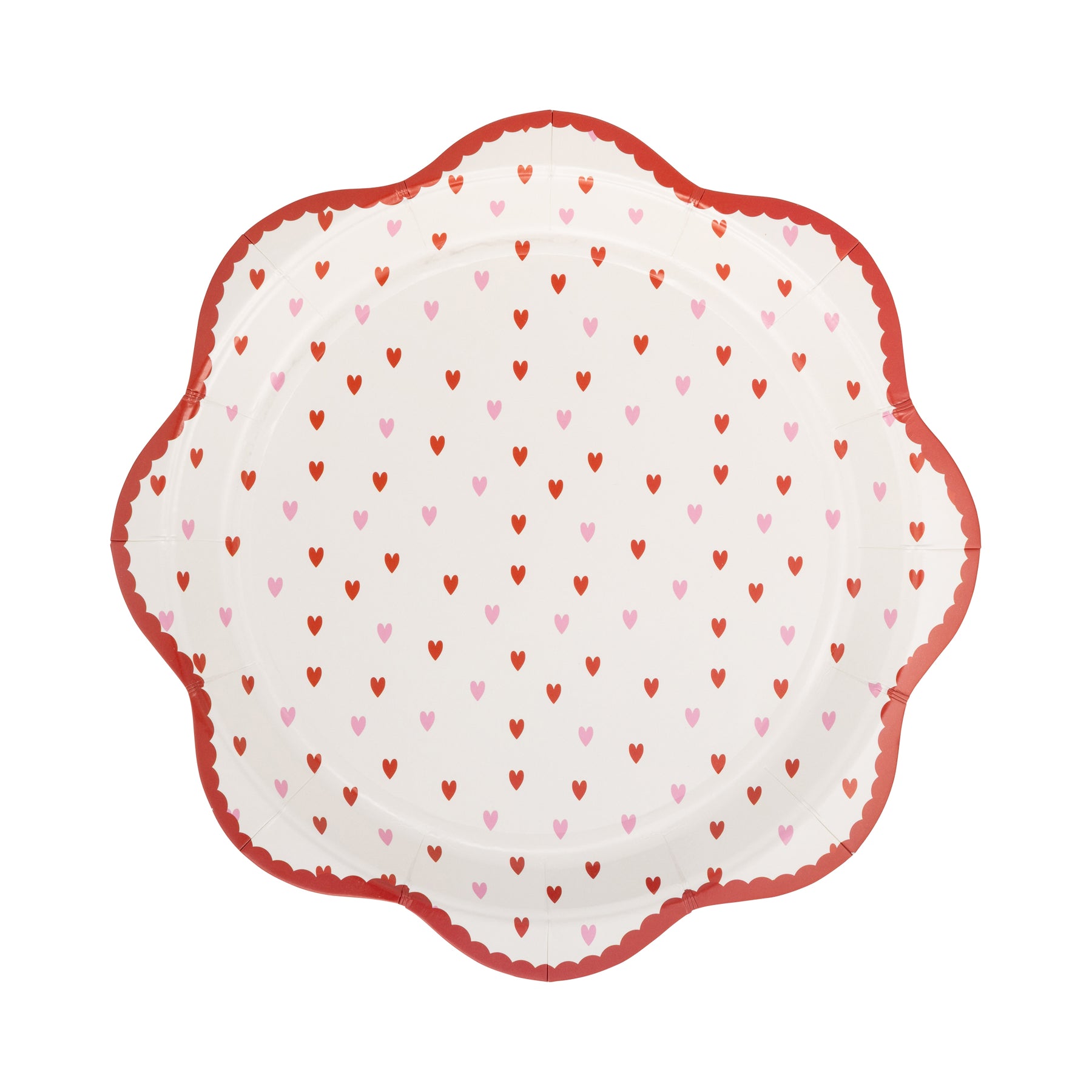 • Little Hearts round scalloped paper plates