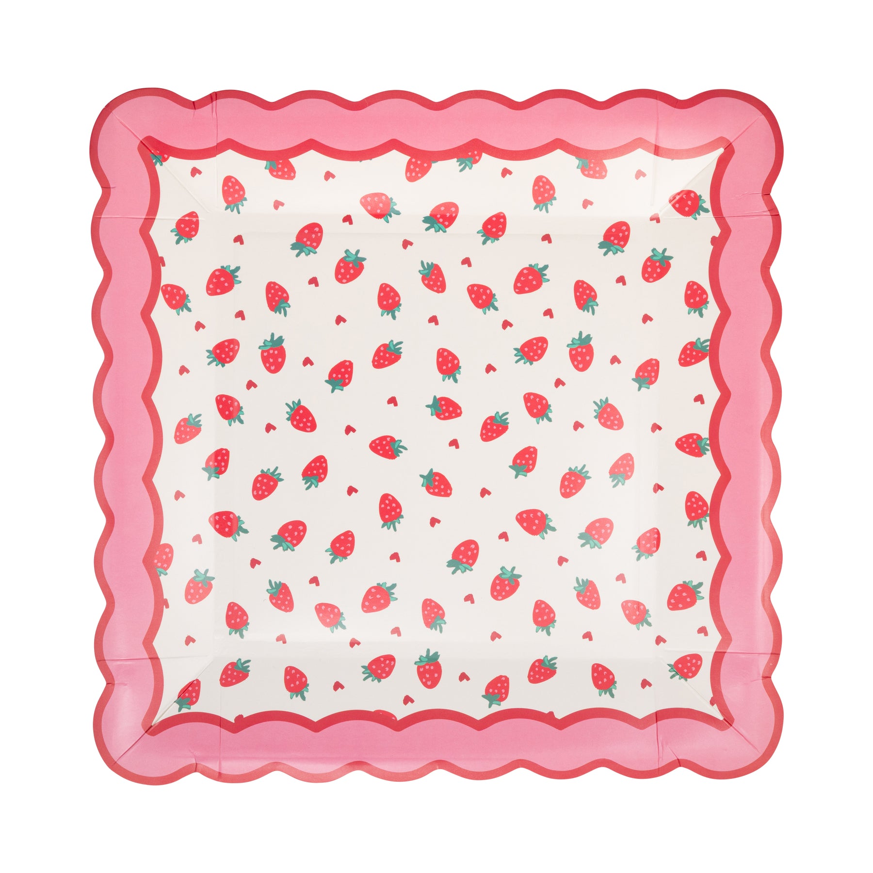 • Strawberries and Hearts square scalloped paper plates