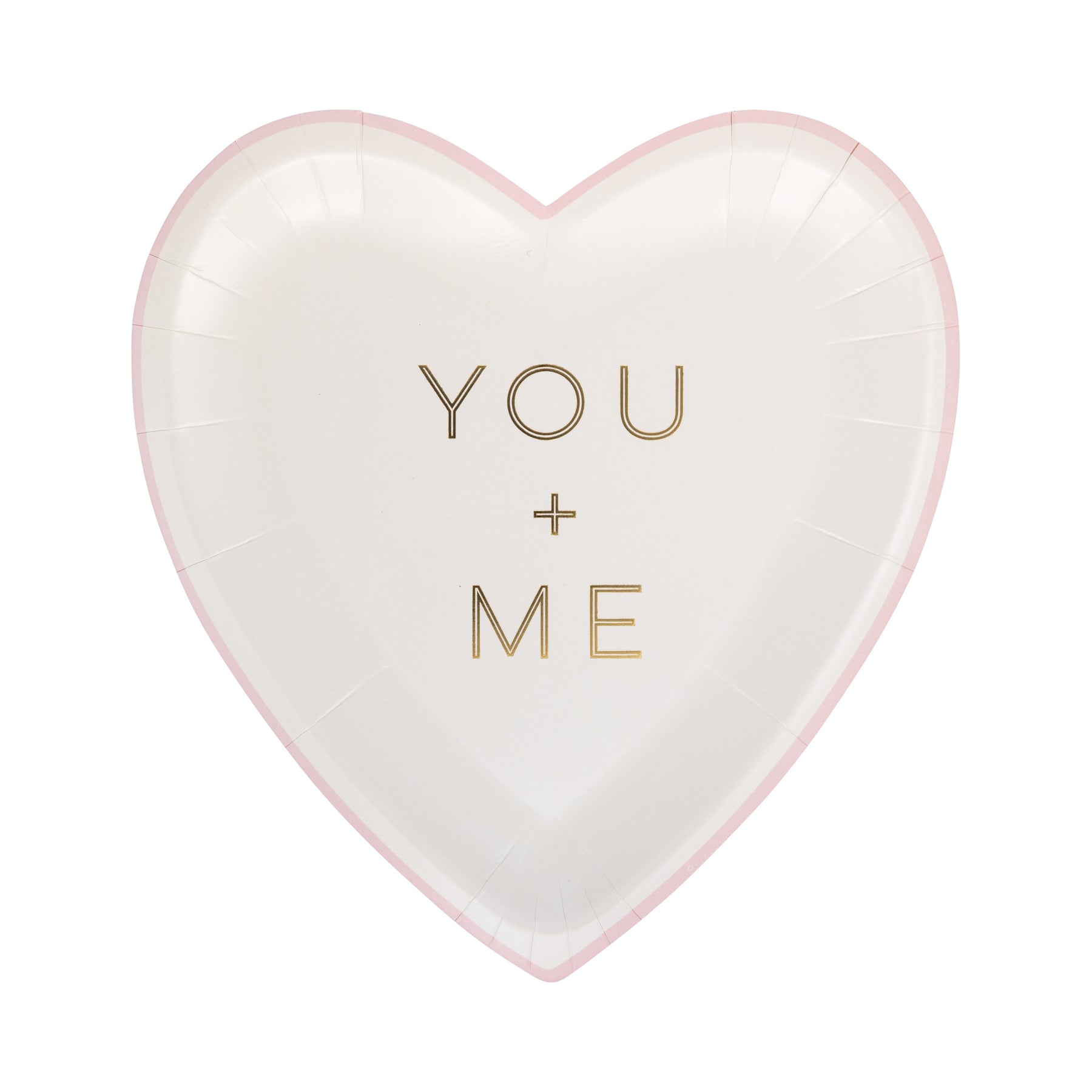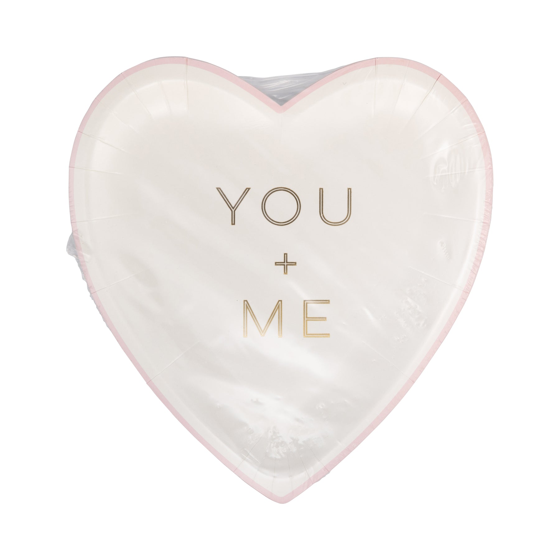 Celebrate love with these charming heart-shaped paper plates perfect for your Valentine's Day gathering! Featuring a sweet "You + Me" design, this set of 8 plates brings festive flair to your party table. Add a touch of romance to your celebration with this delightful tableware essential.