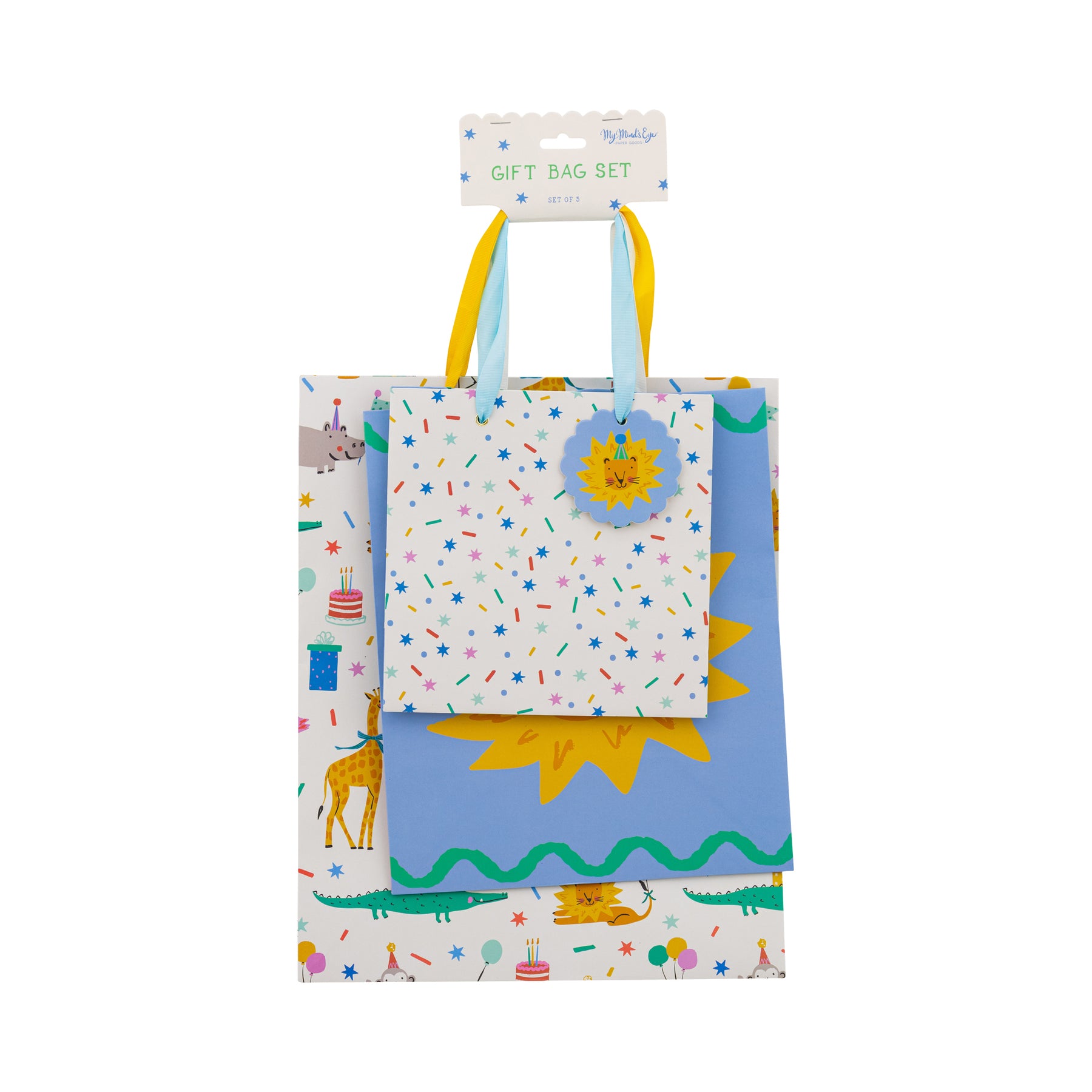 Make your celebration extra fun with this set of 3 animal-themed birthday party gift bags. Perfect for holding treats and surprises, these colorful bags add a playful touch to any party. Ideal for kids’ birthdays, they bring joy and excitement to gift-giving while keeping favors organized and easy to distribute. As part of our Animal Party collection, this piece pairs beautifully with coordinating party supplies.