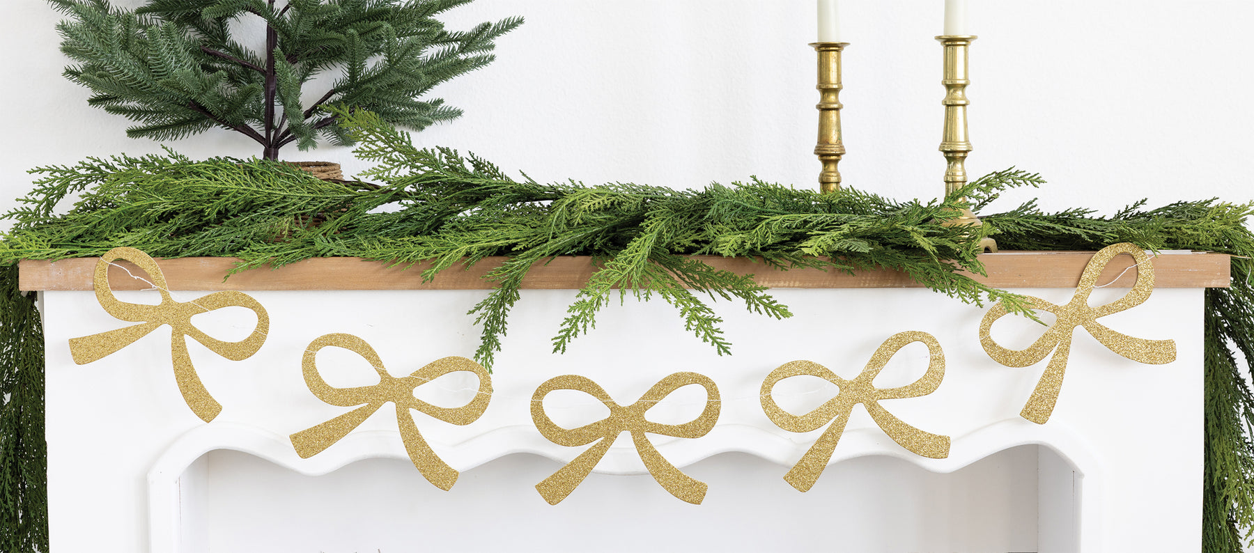 Add a touch of sparkle to your holiday festivities with our Chunky Champagne Glitter Bow Banner. Its shimmering gold glitter bows instantly elevate any celebration, creating a festive and joyful atmosphere. Perfect for decorating mantels, doorways, or party spaces, this banner brings both elegance and fun to your seasonal decor.