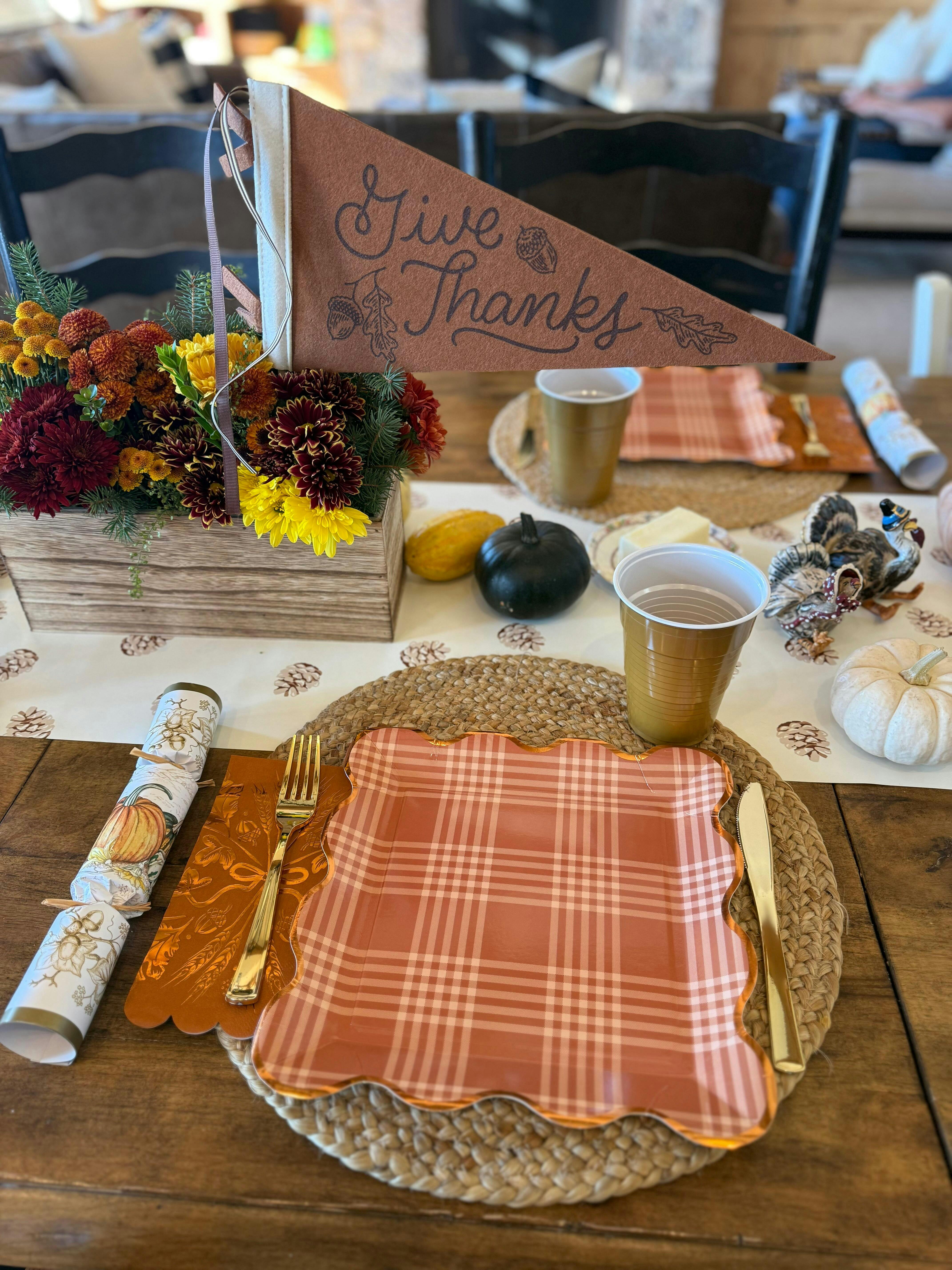 The felt “Give Thanks” pennant is so cute - just what I expected! Great quality and quick shipping! Fun addition to our thanksgiving table.