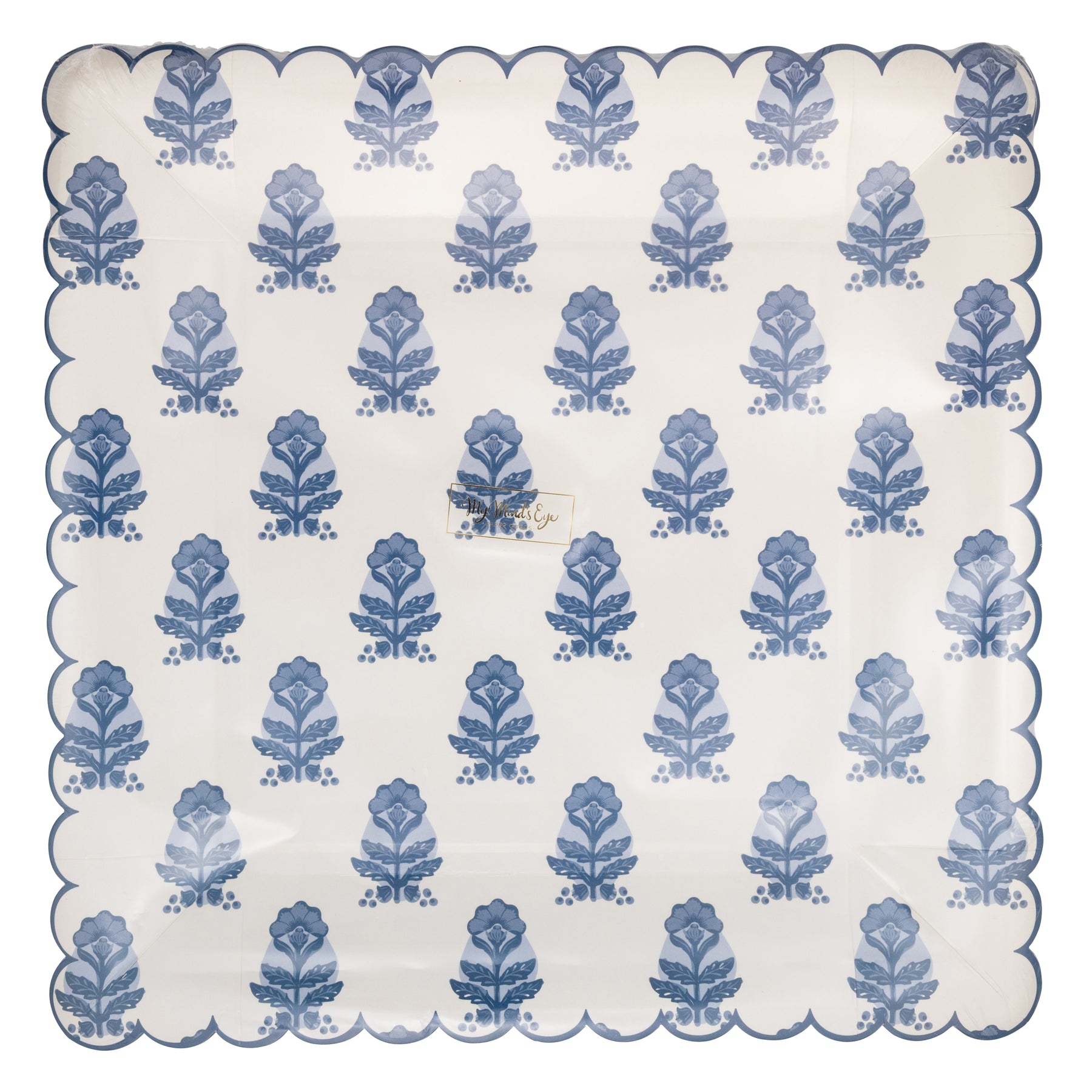 • Light blue and cream flower pattern square plate