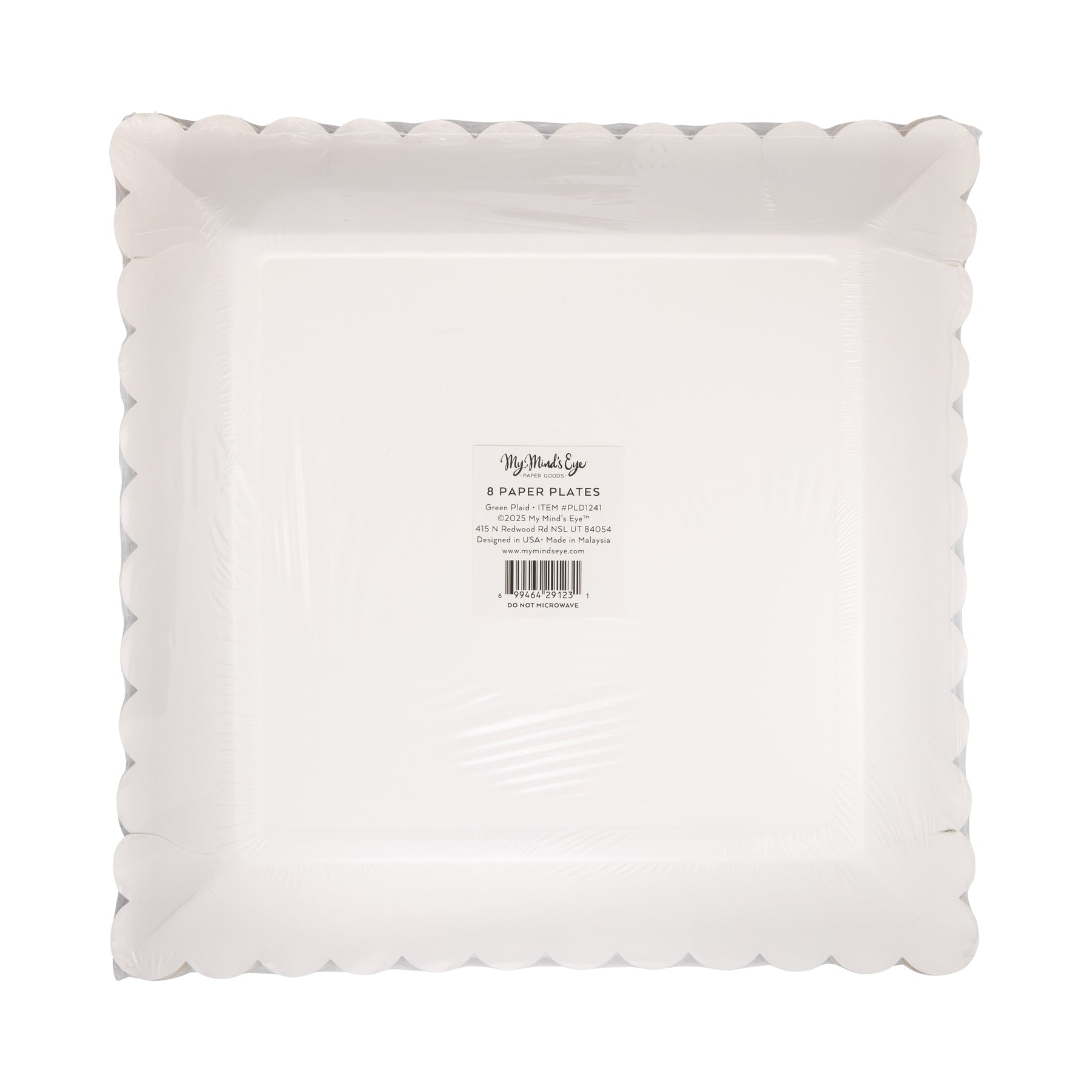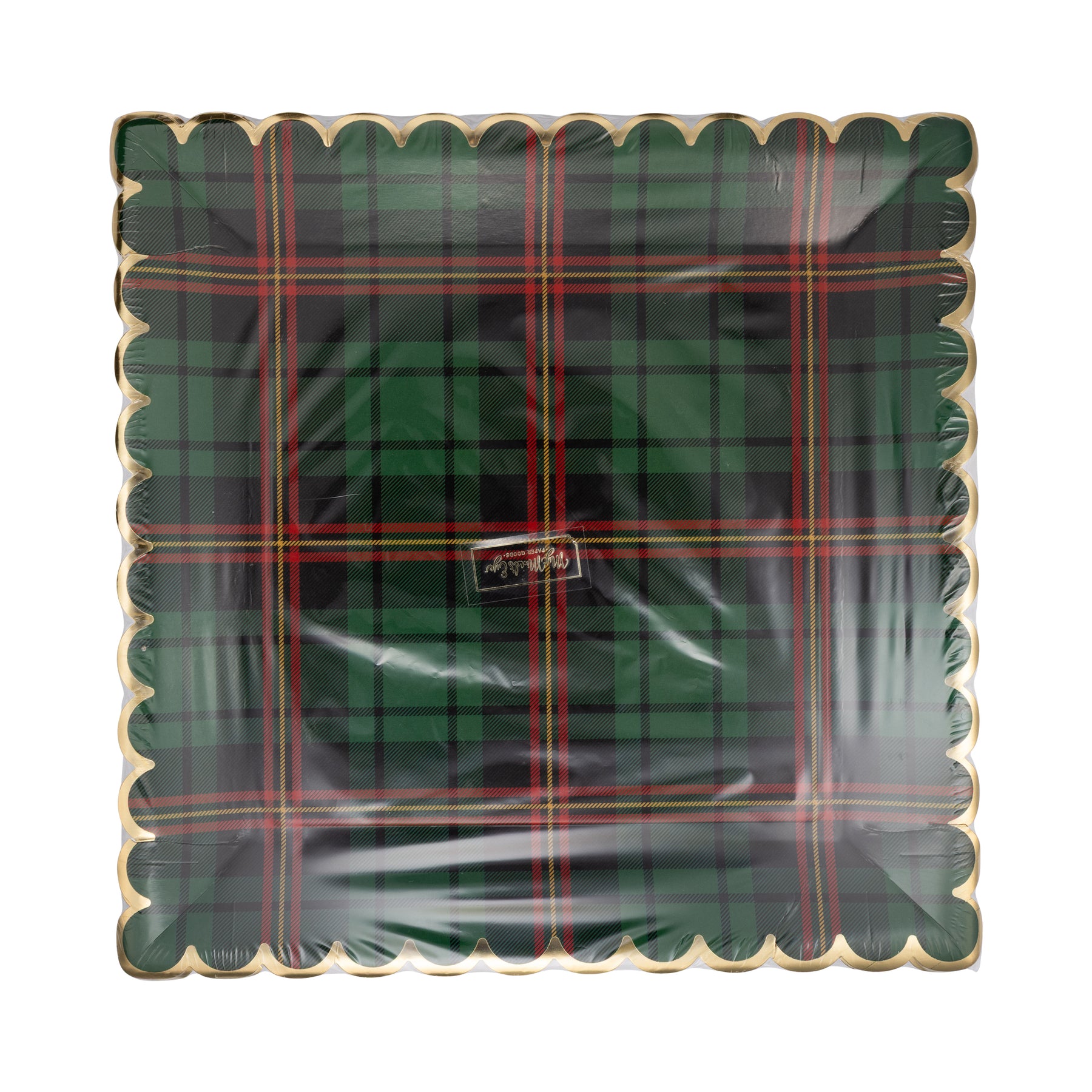 Celebrate the season in style with this Green Christmas Plaid Square Scalloped Plate. Its classic green plaid design brings nostalgic holiday charm to every gathering, perfectly complementing traditional Christmas décor.