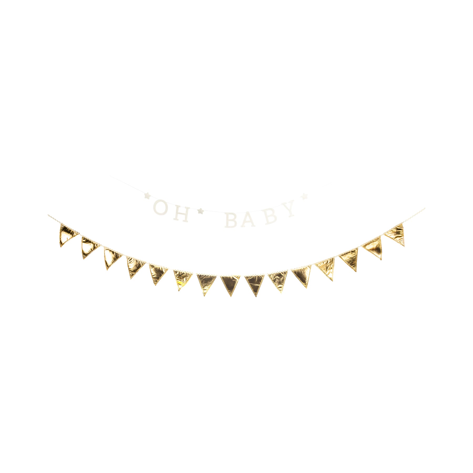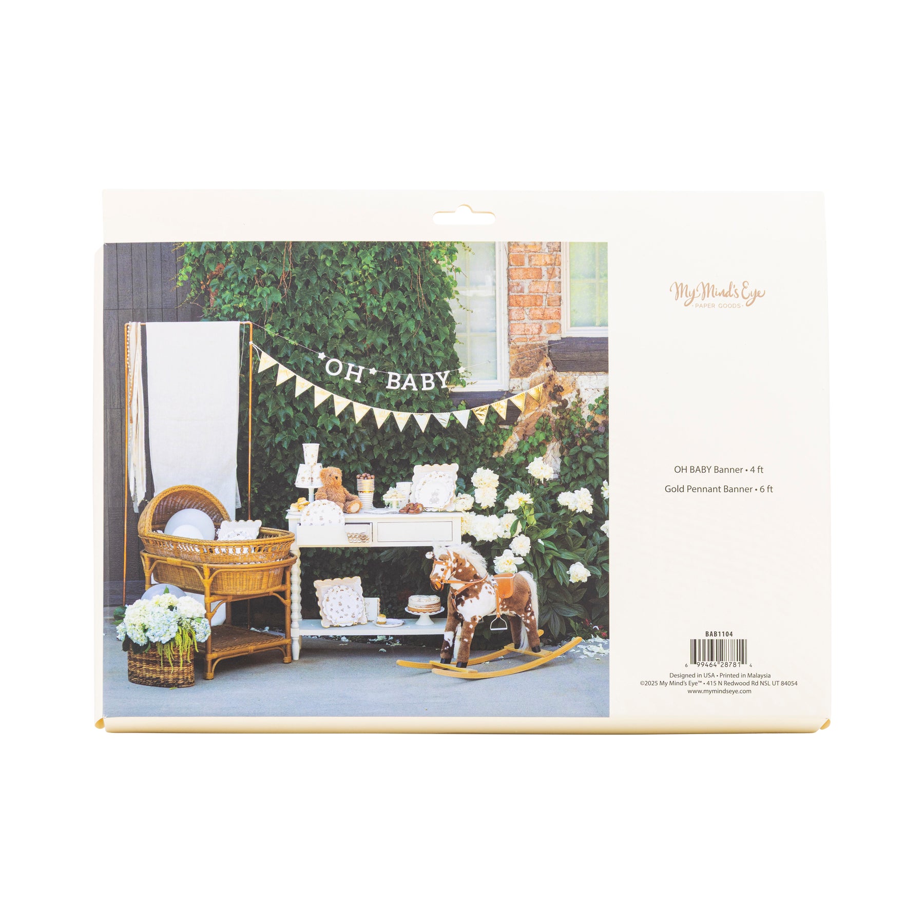Celebrate your upcoming baby shower in style with the Oh Baby Felt and Gold Banner Set. This gender-neutral decoration combines soft felt texture with elegant gold accents, creating a chic and festive atmosphere. Perfect for adding a touch of upscale charm to your party, this banner set is easy to hang and designed to impress your guests.