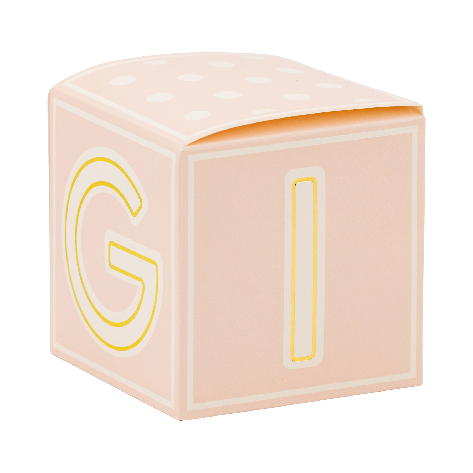 Perfect for celebrating a baby girl, the Pink Block Treat Box adds a playful and charming touch to any baby shower. Its cute block shape and soft pink color make it ideal for holding treats, creating delightful party favors that your guests will love.