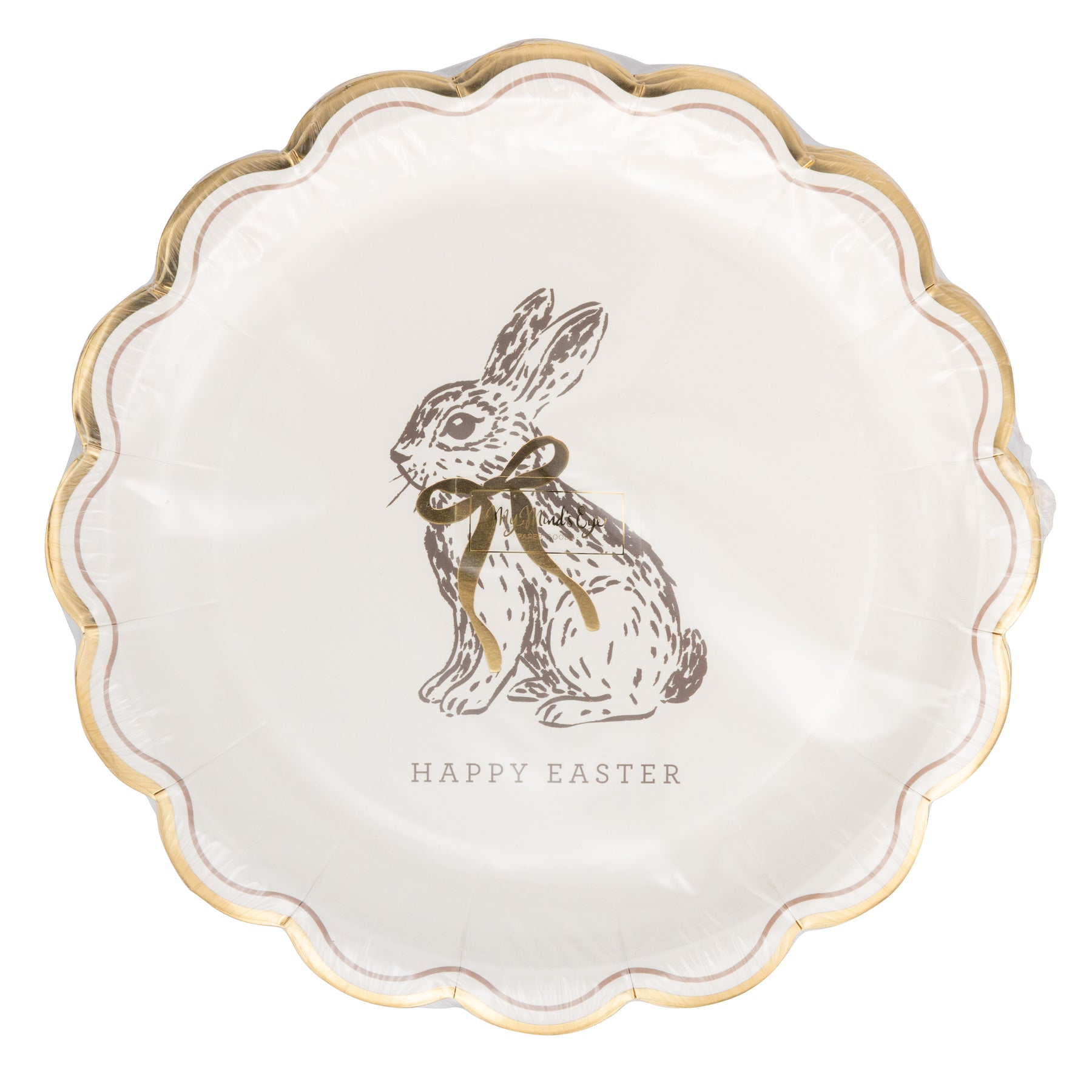• Cream and brown "HAPPY EASTER" bunny round plate design