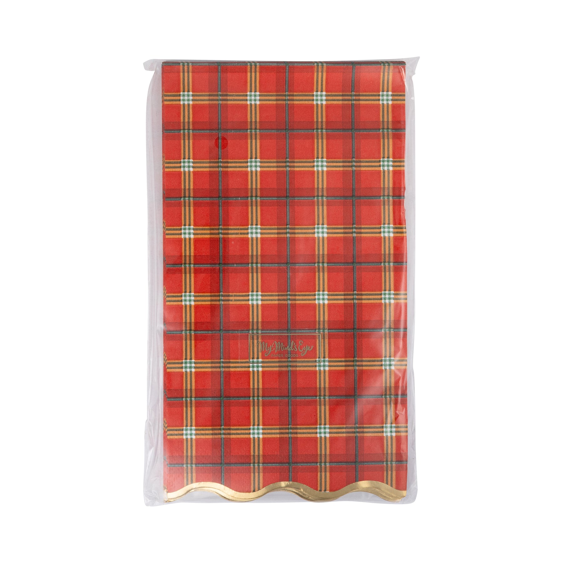 Red Plaid Gold Foiled Scalloped Dinner Napkin