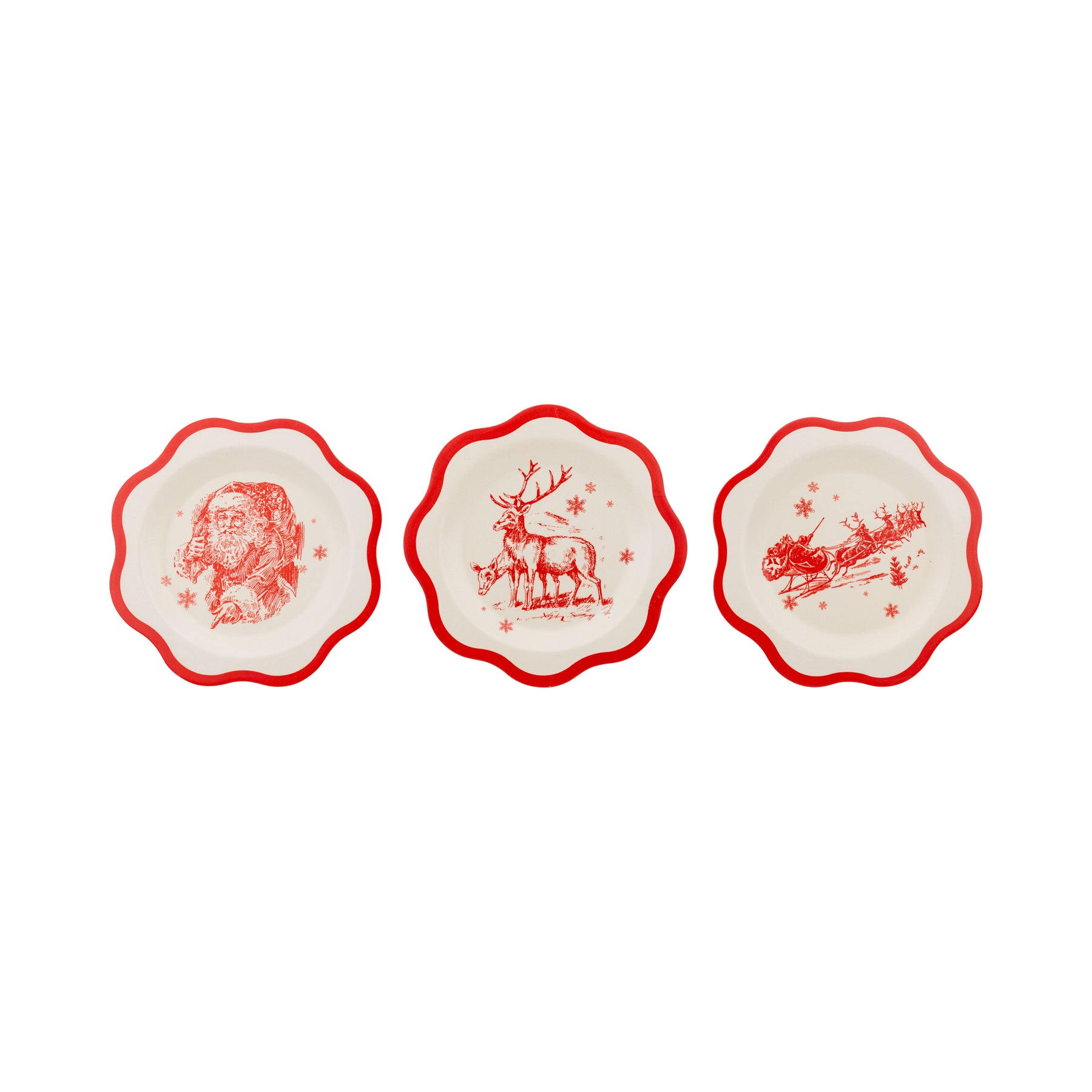 Celebrate the season with this set of three Red Vintage Art Bamboo Plates, each featuring traditional Christmas scenes. Crafted from eco-friendly bamboo, these plates add a warm, nostalgic touch to your holiday table while being sturdy enough for festive feasts and party treats.