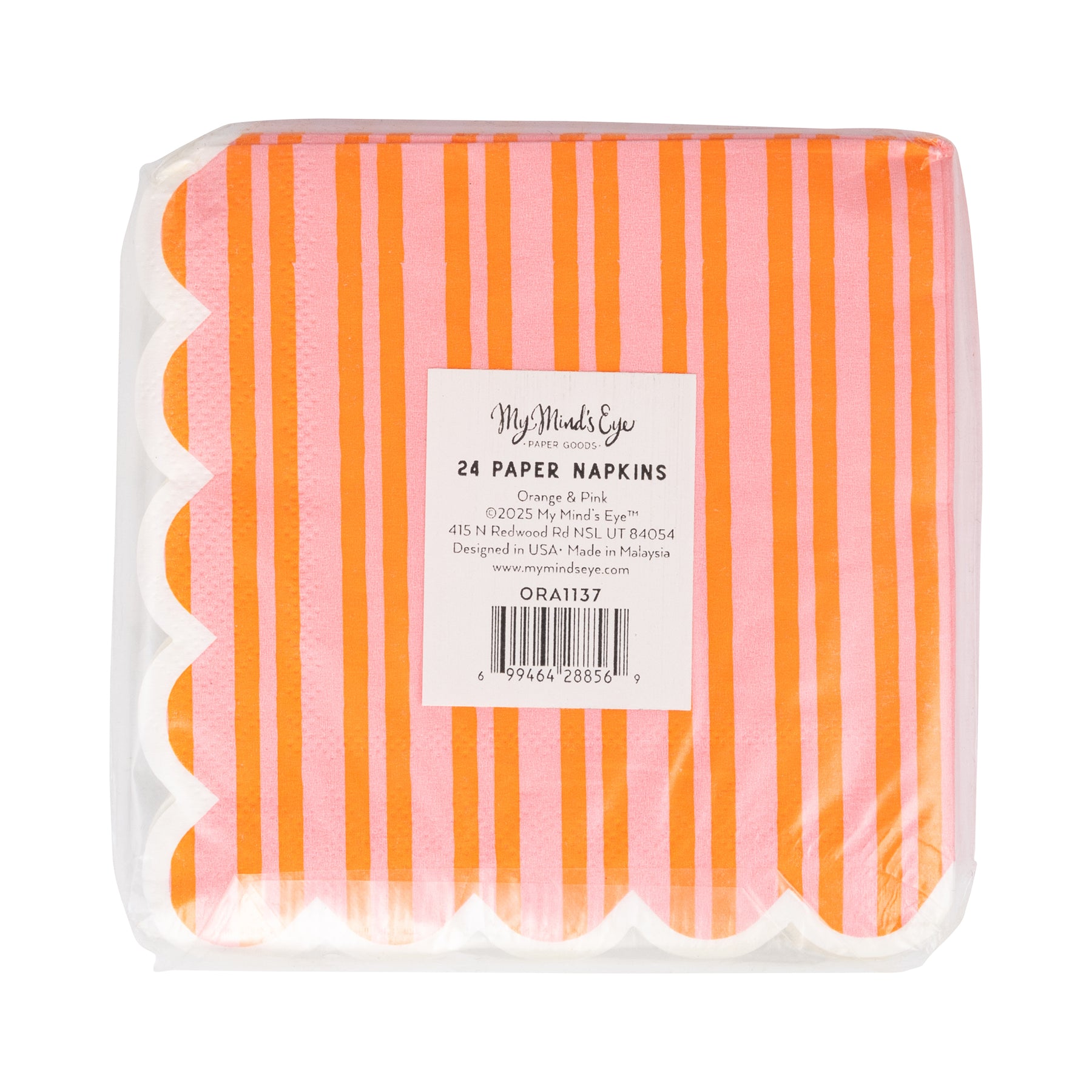 Add a vibrant touch to your celebration with these Orange & Pink Striped Cocktail Napkins. Perfectly coordinating with any orange-themed party, their lively stripes bring energy and fun to your table setting. Ideal for cocktails and small bites, these napkins add a playful splash of color while keeping things tidy.