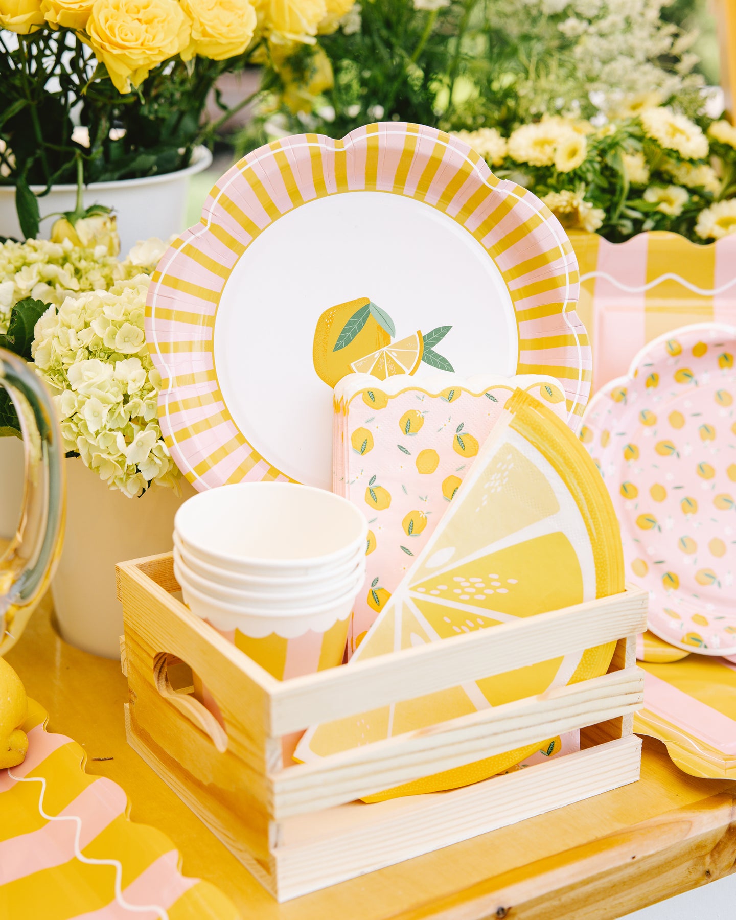 Bring a burst of sunshine to your party with our Yellow & Pink Striped Scallops Plate. Its lively lemon-inspired colors and playful scalloped edges make it ideal for serving snacks, desserts, or appetizers. This festive plate adds a bright, cheerful vibe to any gathering, making your celebration unforgettable.