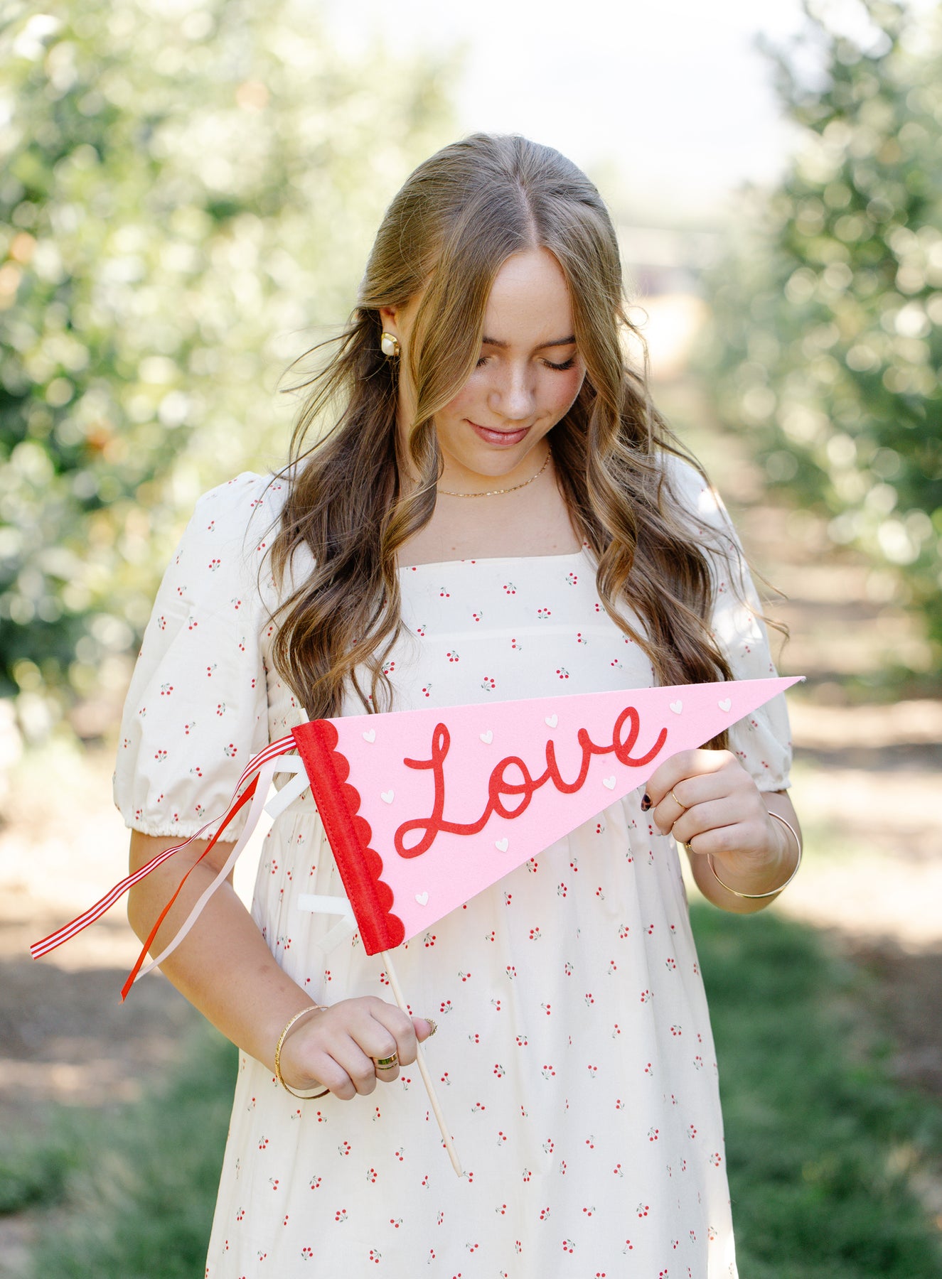 Spread the love this Valentine's Day with our charming felt pennant! Perfect for adding a festive touch to your celebration, this delightful decoration features a "Love" message that captures the spirit of romance. Ideal for party backdrops, mantelpiece displays, or gift wrapping embellishments, this felt pennant brings warmth and whimsy to any Valentine's gathering.