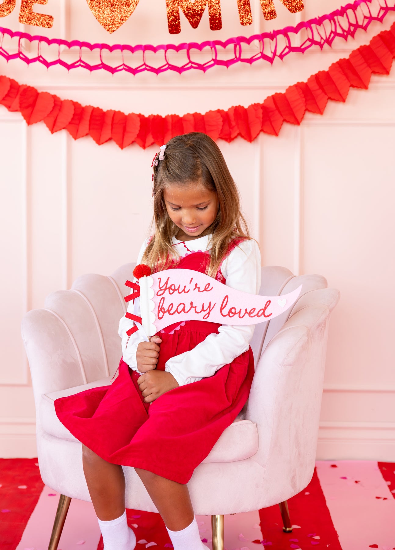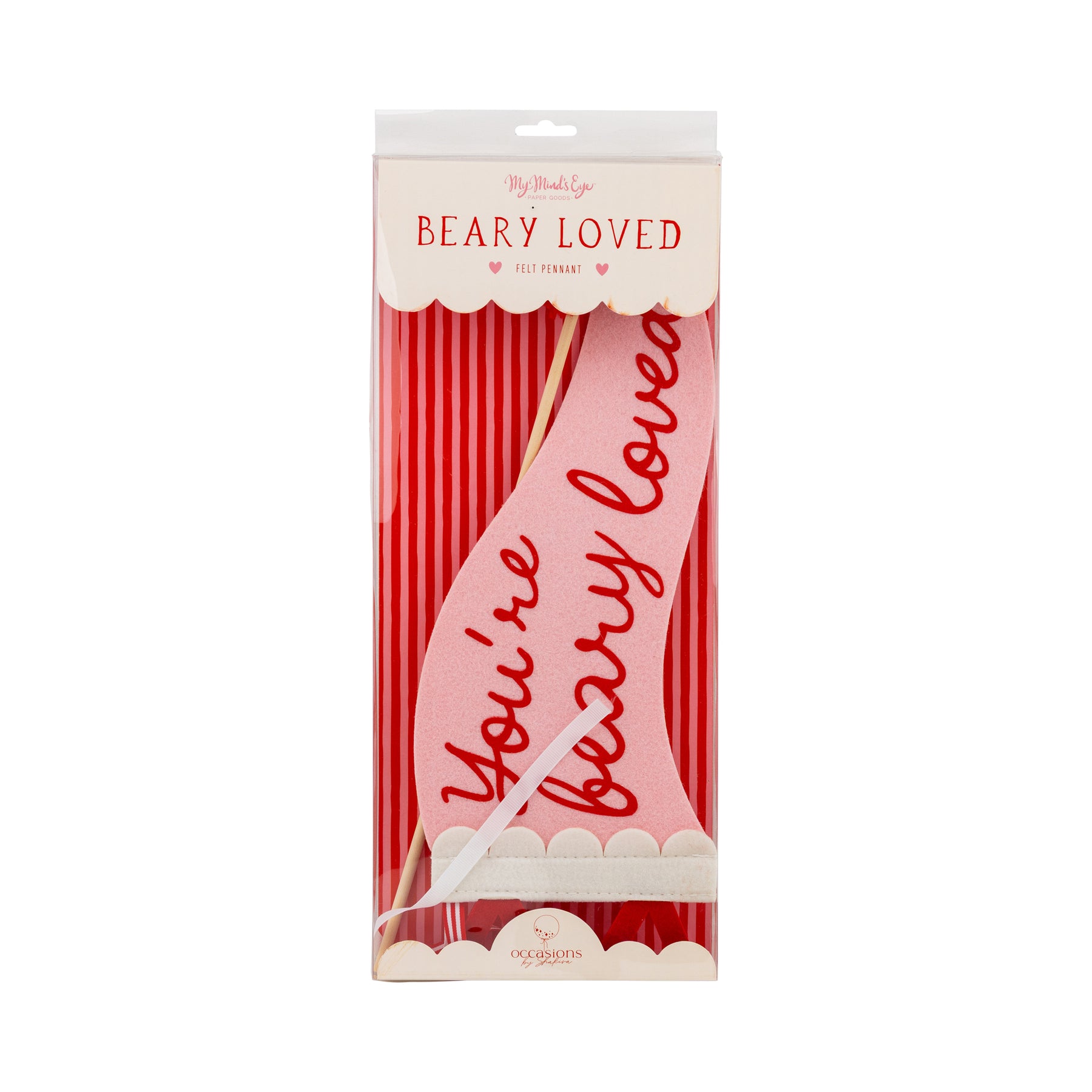 • "YOU'RE BEARY LOVED" red, cream, and pink pennant