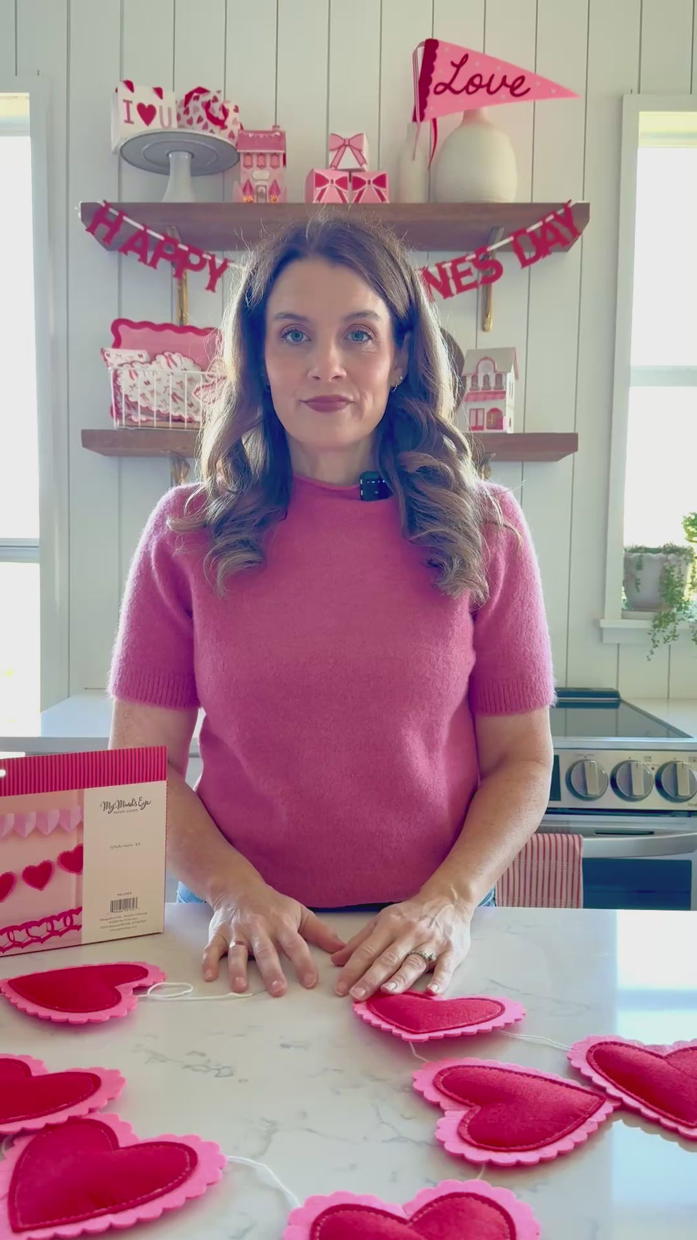 • Red and pink puffy heart felt banner